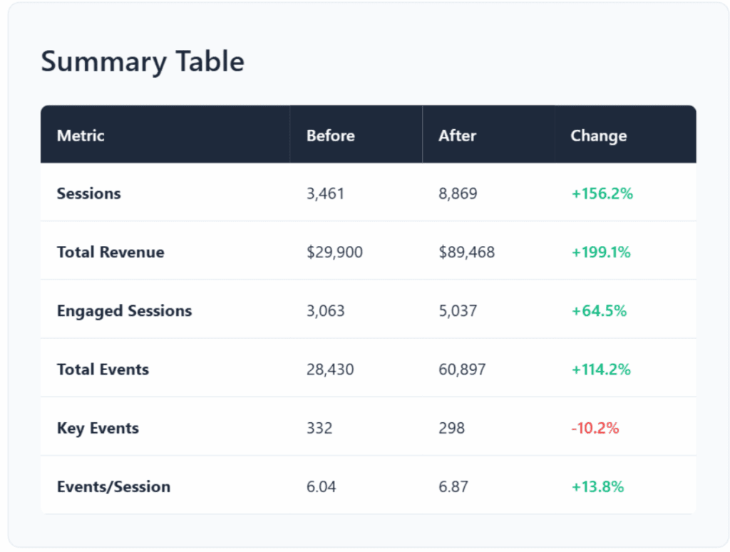 - 65% engaged sessions increase (5,037 vs 3,063)